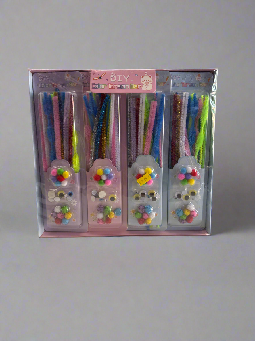 This set of 12 pipe cleaners features small pompom balls and googly eyes, perfect for detailed arts and crafts projects. Designed for versatility, they are ideal for creating unique party favors and DIY craft ideas, offering flexibility and creative potential for crafters of all skill levels.